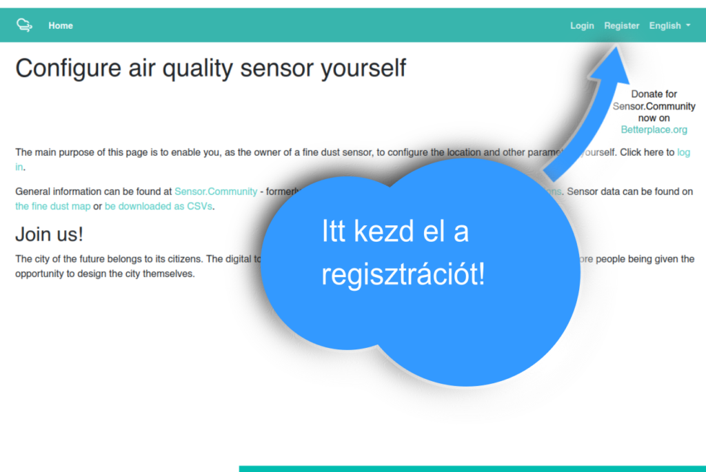 Menj a devices.sensor.community oldalra, készíts felhasználói fiókot, és így már te is a levegőminőség-mérő hálózat részévé váltál.