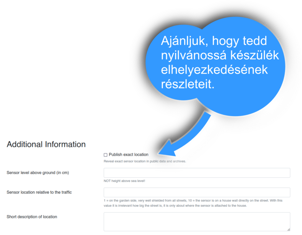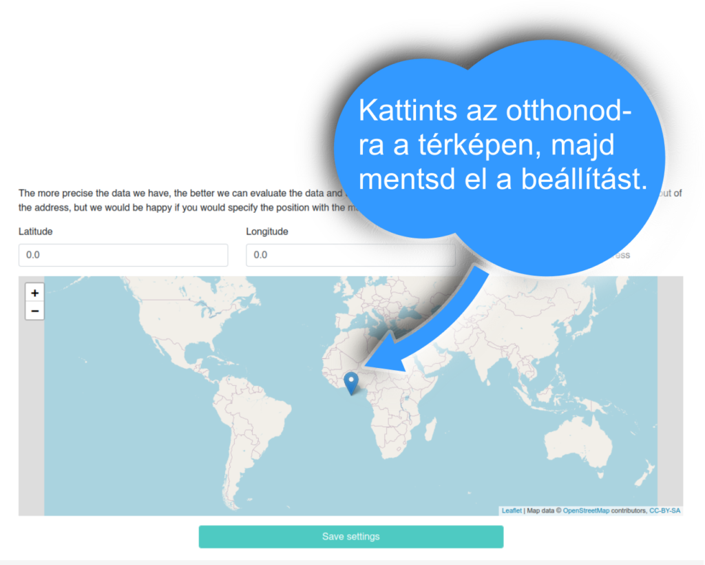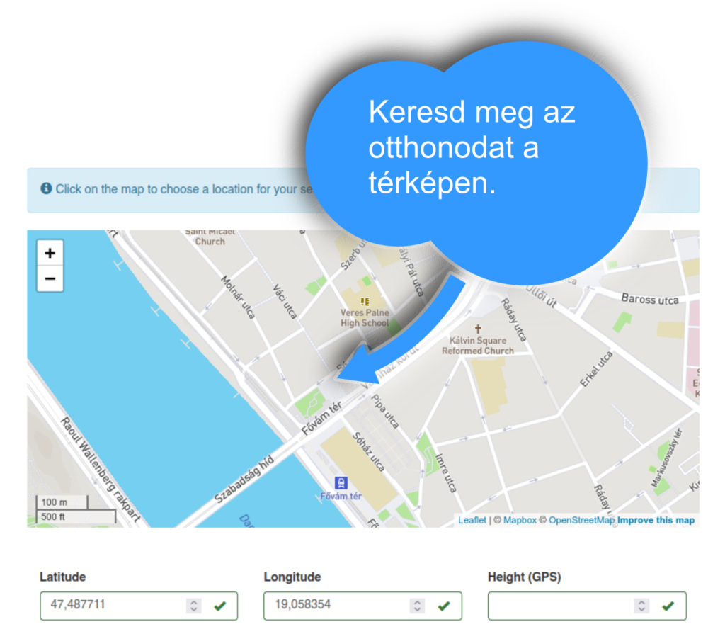 Helyezd el a pint az otthonodnál. Minél pontosabbak az adataink, annál pontosabb lesz az eredmény. A címből is meg lehet határozni a szenzorod helyét, de így sokkal pontosabb adatokat kap az oldal.